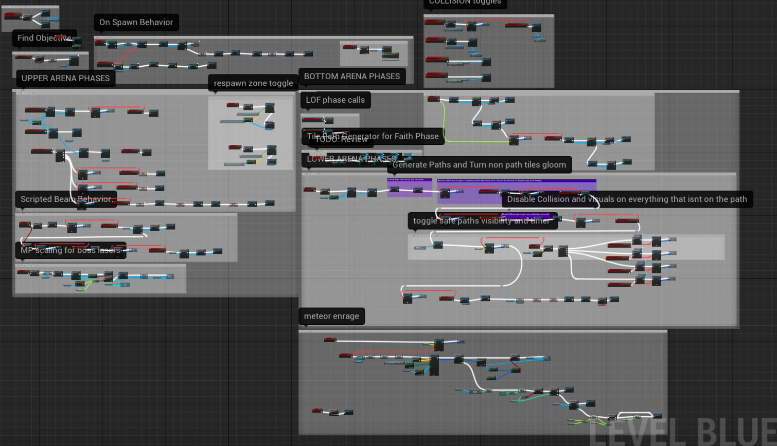 Each boss features unique behaviors, scripted events, and multiple distinct phases that require intimate knowledge of Unreal's replication system. In addition, each boss required a proper setup of script logic to communicate between our unique procedural environment and themselves while ensuring the overall package for each boss felt challenging and exciting for players with a wide variety of playstyles.