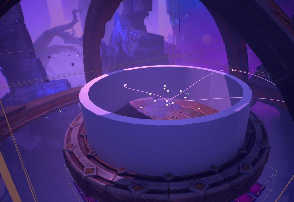 Once the size and other specifics of the level were finalized, I merged the rotating rings and the arena itself so it could be shattered via VFX