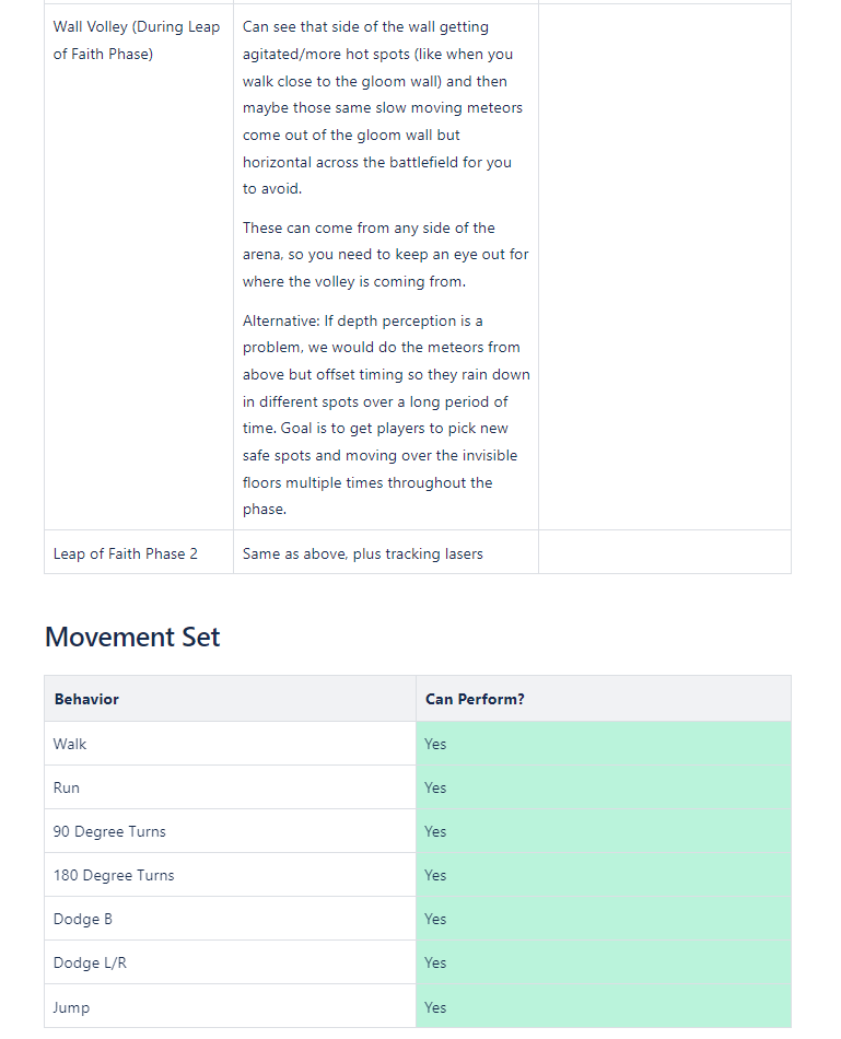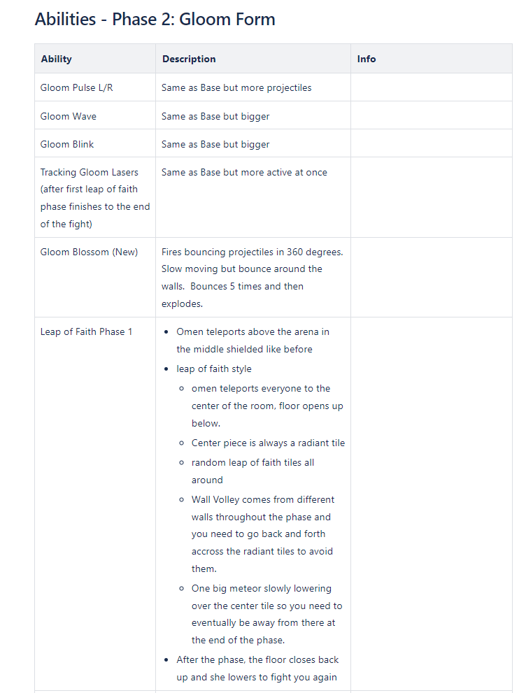 After iterating we decided to completely cut the constellation mechanics in favor of the leap of faith event as inspiration for the fight mechanics. Instead of using constellations at the cardinal directions she would use the leap of faith tiles and spawn them at you from different directions while the players had to navigate most of the floor being gone.