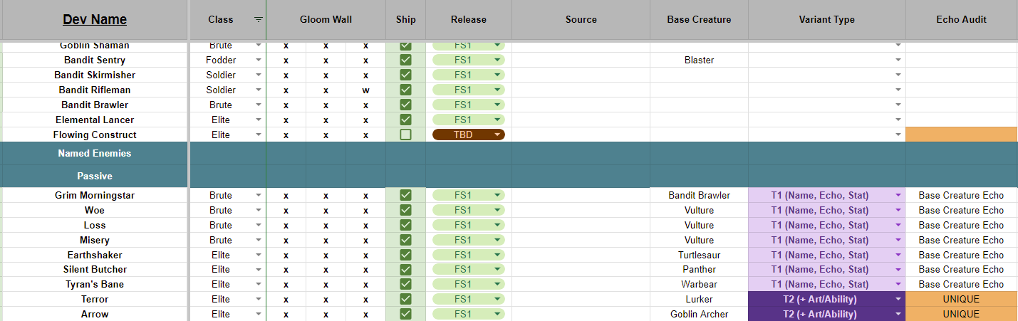 Wayfinders creatures had different levels of variants that we developed for the project, that way when different quests/encounters/levels needed a special creature for a quest I could quickly create these variants for them depending on the level of complexity and allowing progression and loot to get an overview of what creatures needed loot without getting lost in the files.