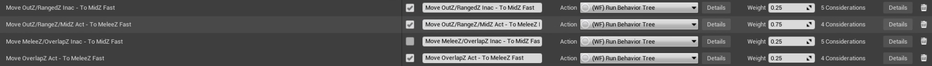 Involving making sure gimmicks were weighted higher than basic attacks, but still at a chance, as well as other movement based behaviours for actively pursuing a player, retreating into their ideal ranges and strafing around their target player when idle